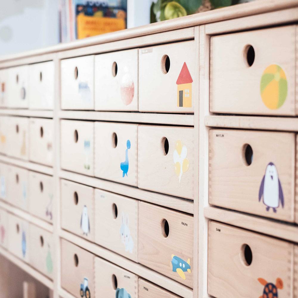 Speelgoed en materialen zijn op ooghoogte van kinderen geplaatst en aangepast aan verschillende leeftijdsgroepen. Door te kiezen voor passief spelmateriaal en open eind materialen worden kinderen uitgenodigd tot activiteit, zelfstandig denken en doen.