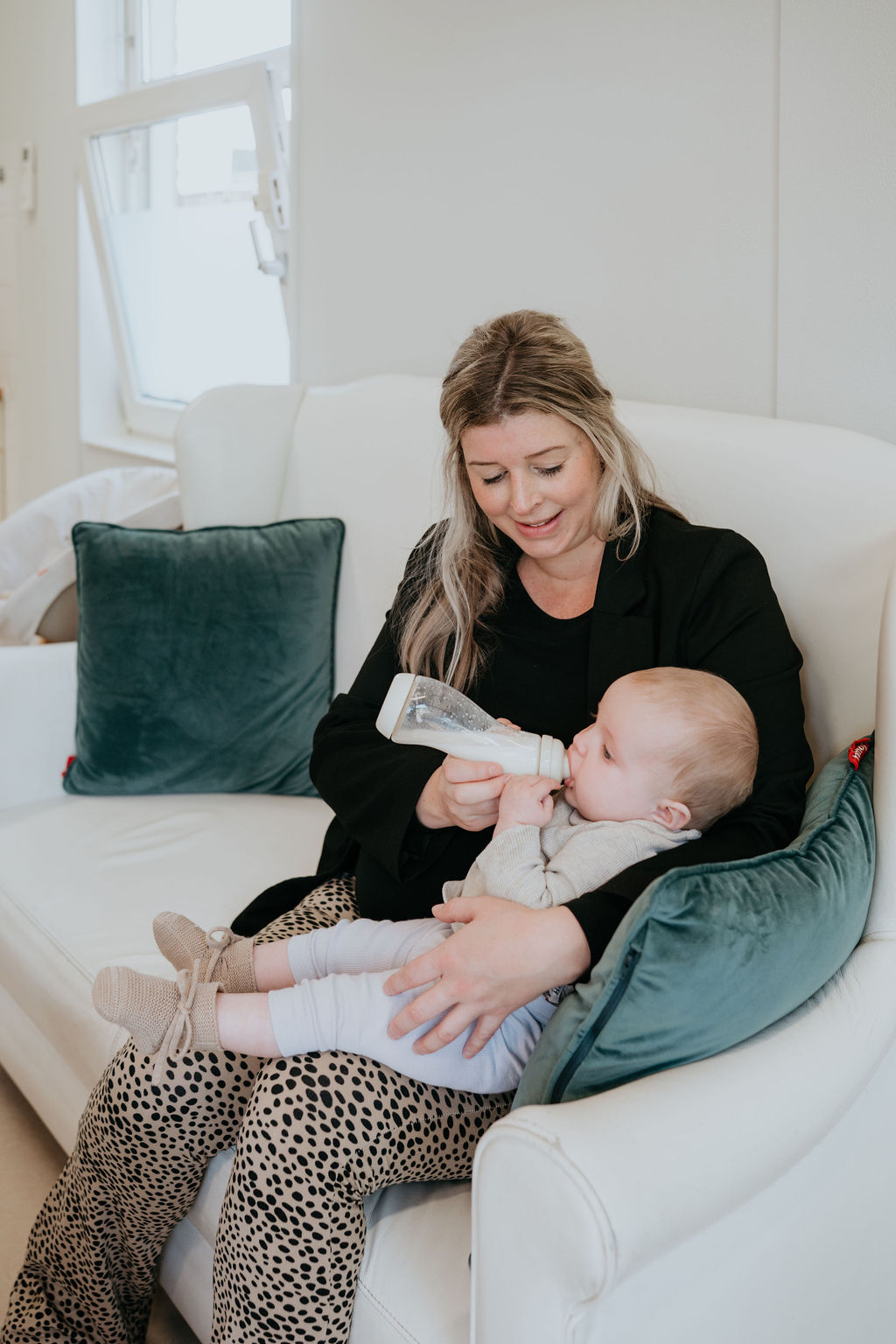 Baby’s die meegaan in het vaste ritme krijgen fruit. Baby’s die nog niet zelfstandig kunnen zitten, voeden we op schoot—goed voor hun lichamelijke ontwikkeling én een waardevol 1‑op‑1 moment. Je benoemt wat je doet, zingt een liedje en geeft zo taal en houvast op een natuurlijke manier.