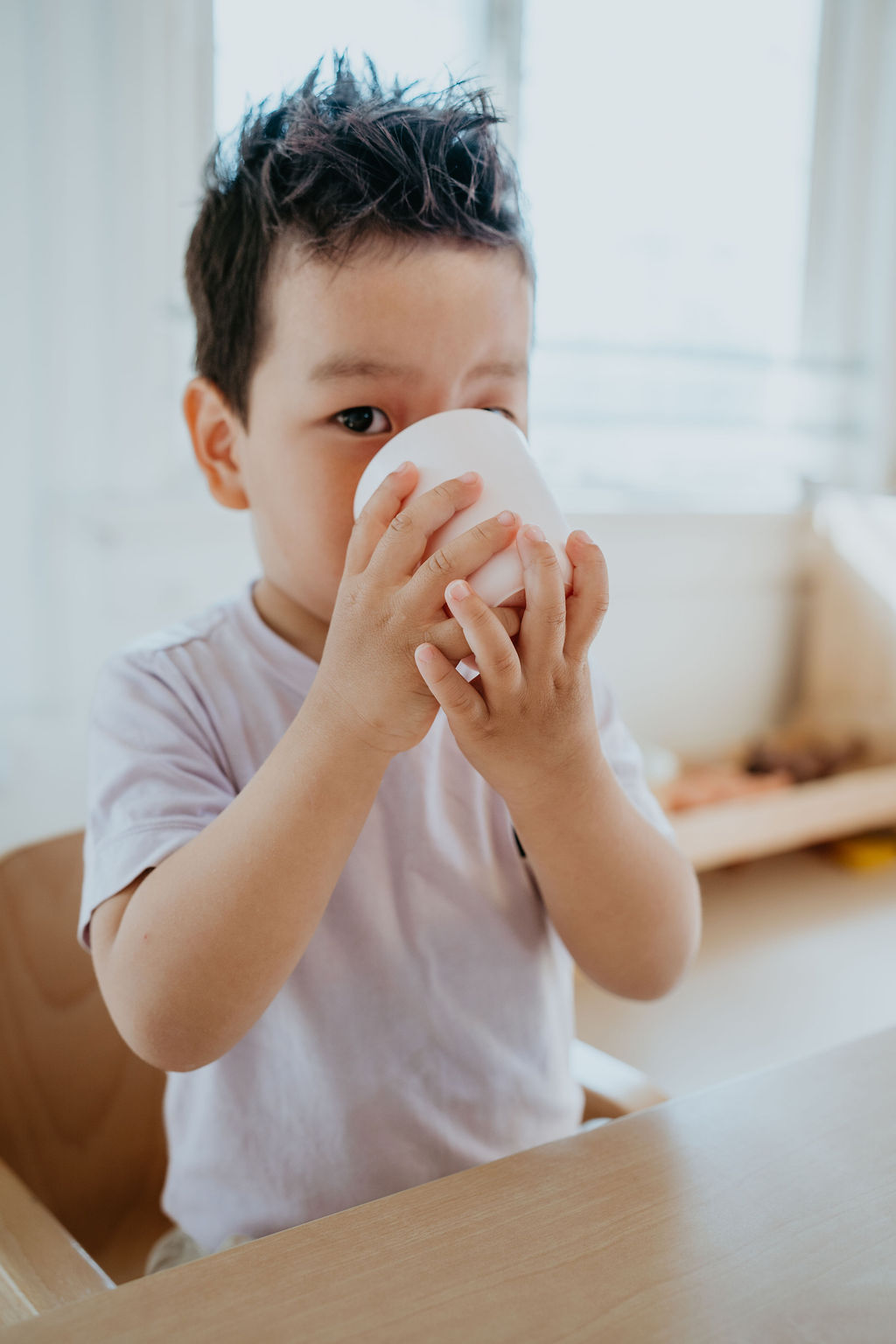 ‘Met mijn collega kijk ik of er bijzonderheden zijn waar we rekening mee moeten houden. Daarna gaan we met de kinderen opruimen en om half tien aan tafel. Dan volgt het eerste eetmoment: fruit. We zingen een liedje, de kinderen krijgen fruit en water wat ze zelf mogen inschenken. Dat doen we om de zelfstandigheid en samenwerking te bevorderen. Lukt het niet? Vraag dan een vriendje/vriendinnetje die je wil helpen. Sommige kinderen vertellen honderduit over thuis. Na een kwartier krijgt iedereen een washandje; de kinderen boenen zich (fruit geeft plakhanden) en checken of ze schoon zijn voor de spiegel. Daarna spelen, een creatieve activiteit of Friends call me Jim, het beweegprogramma van Kindergarden, en dan… naar buiten!’