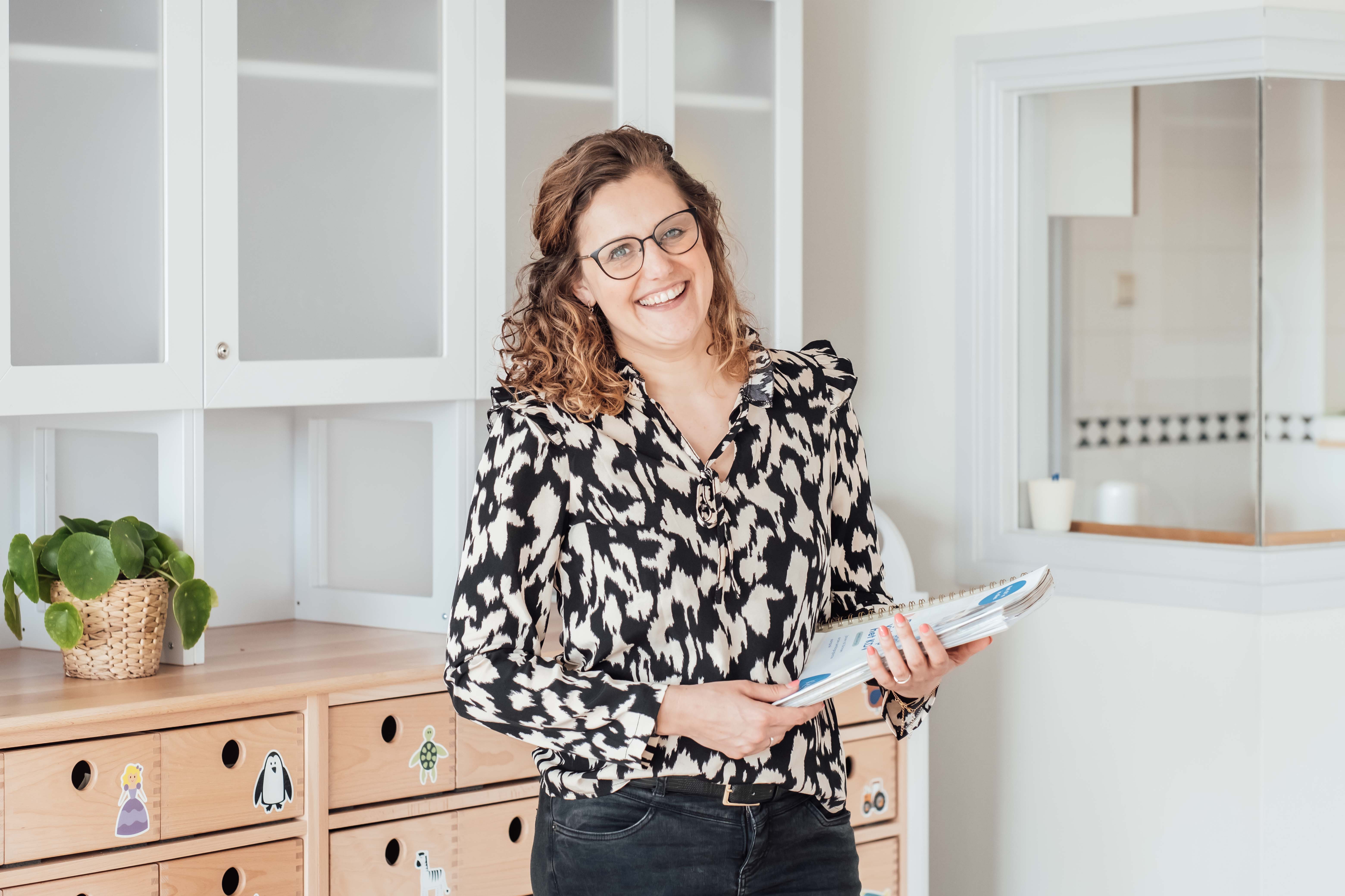 ‘Via de Kindergarden Academie word je opgeleid tot pedagogisch expert. Voor pedagogisch expert plus en pedagogisch coach heb je andere certificaten nodig. Die kun je inmiddels via de Academie halen, maar omdat er destijds corona was, heb ik mijn opleiding extern gedaan, online uiteraard. Kwam goed uit, want ik heb aan de pilot voor deze functie meegewerkt. Tijdens mijn zwangerschapsverlof is besloten om er inderdaad een officiële functie van te maken. Toen ik terugkwam van verlof kon ik gelijk instappen.’