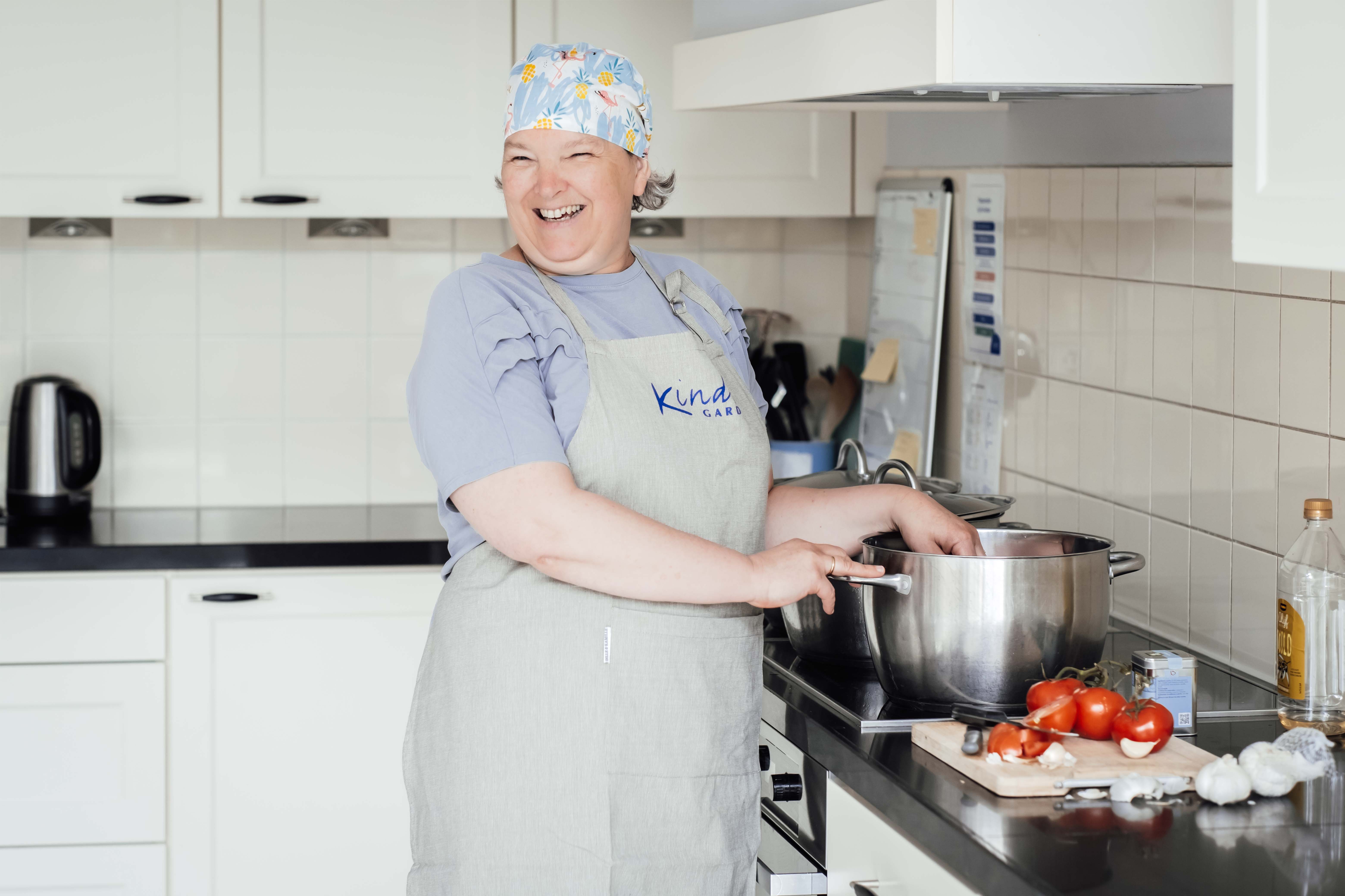 ‘Jazeker, toen ik hier zes jaar geleden kwam werken was Kindergarden bezig met de introductie van een nieuw voedingsbeleid, inclusief nieuwe recepten. Samen met de vestigingsmanager en de adjunct zijn we daarmee aan de slag gegaan. Nieuwe recepten uitproberen vind ik heel leuk. Sinds vorig jaar is het voedingsbeleid verder aangepast. Dan is de uitdaging: wat kunnen en mogen we, bijvoorbeeld qua kruiden. We gebruiken geen of zo weinig mogelijk zout, en geen suiker. Soms gebruik ik knoflook en soms vraag ik de kinderen: wat vinden jullie lekker? Voor de kleinsten koken we natuurlijk apart.’