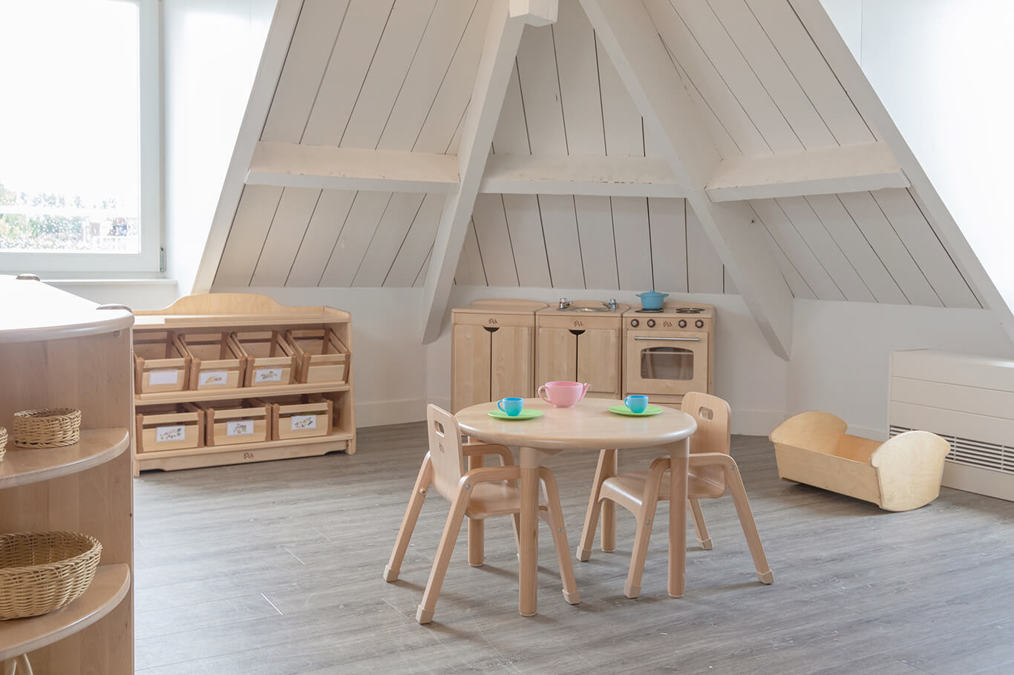 Tijdens de verbouwing zijn er lichtkoepels geplaatst op onze zolder. Daardoor is er een speelse ruimte ontstaan waar de peuterplussers en de kinderen van de BSO zich thuis voelen. Op de peuterplusgroep richten we ons vooral op het vergroten van de zelfstandigheid. Zelf fruit snijden met een kindermesje, zelfstandig naar het toilet gaan en voor jezelf leren opkomen.