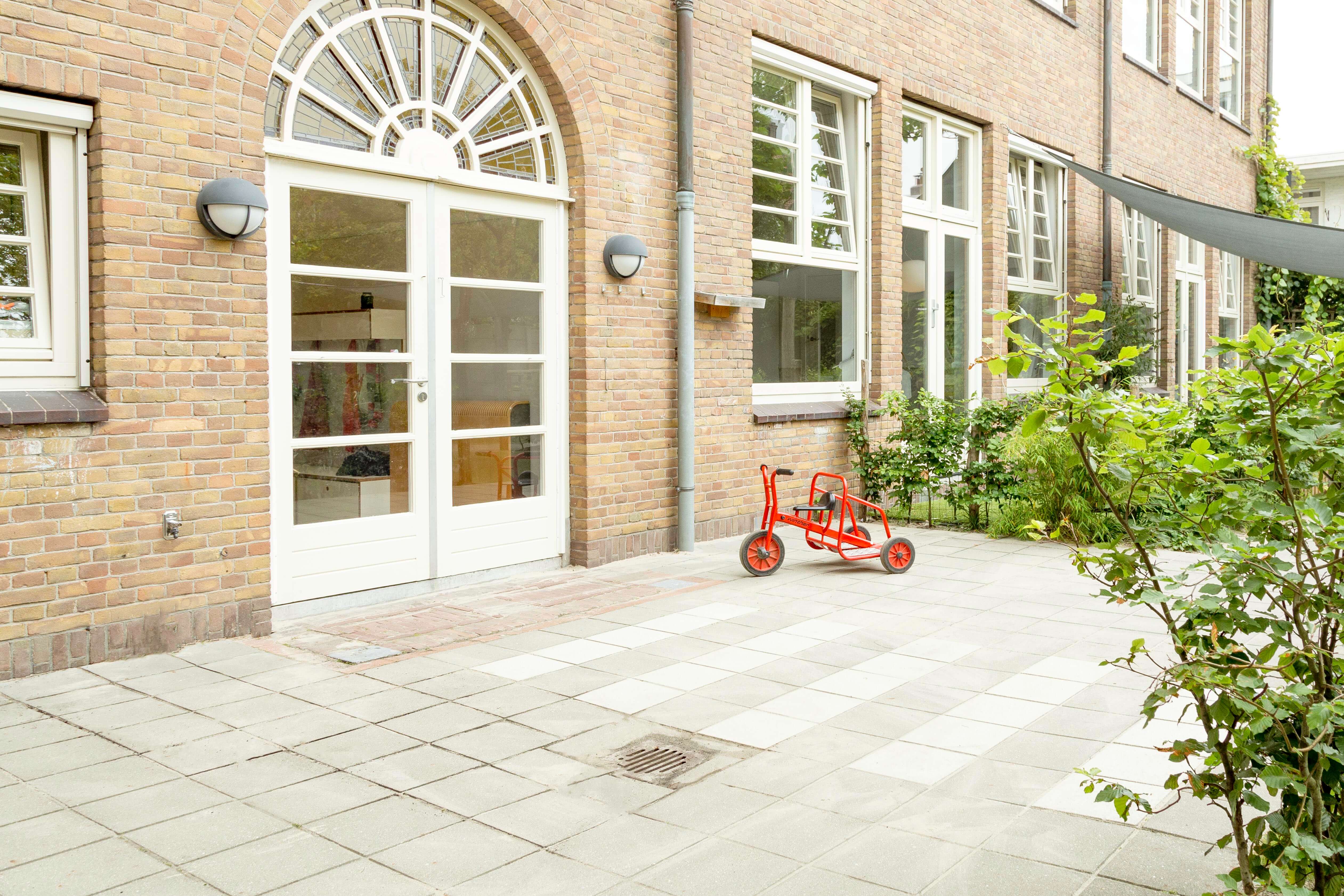 Aan de achterzijde van het pand stap je zo de ruim-opgezette en omsloten stadstuin in. Genoeg ruimte om met de kinderen te ravotten, te fietsen en je samen te verstoppen in het bamboe.
