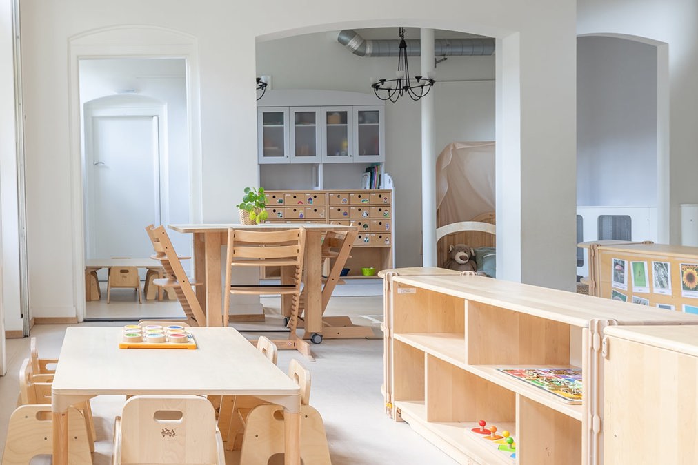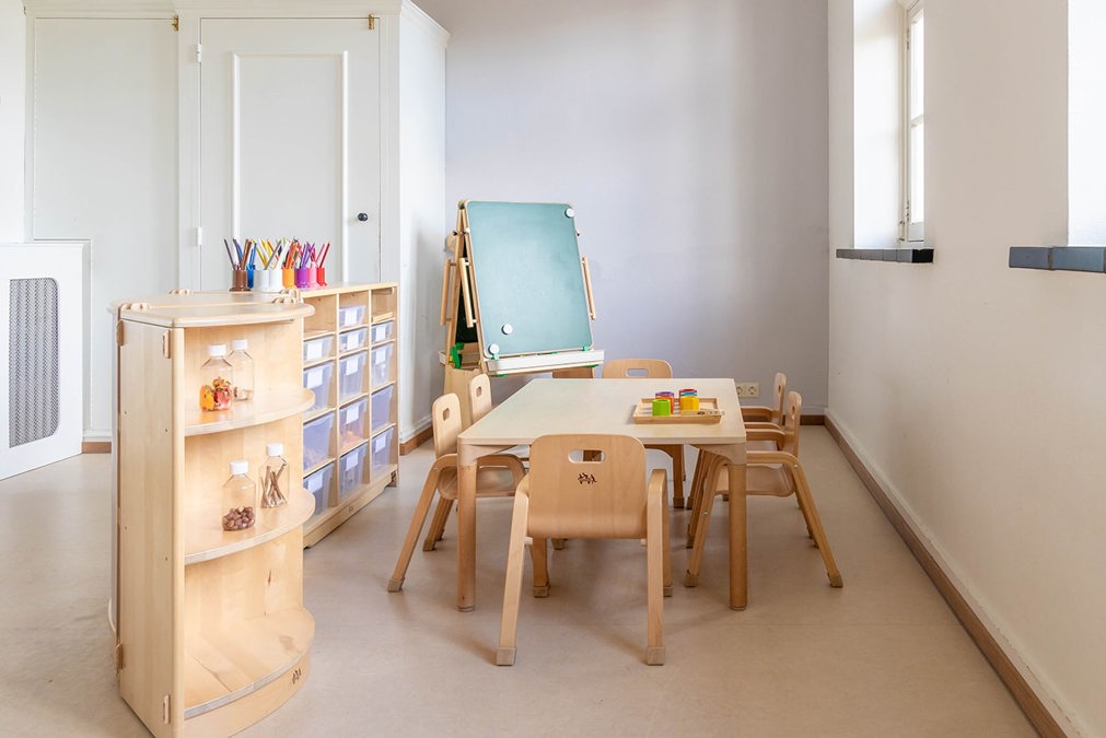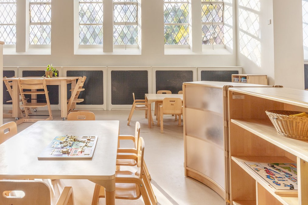 Op zolder zit onze bieb en het atelier, die ook door onze BSO worden gebruikt. Onze parkachtige kloostertuin is een oase van rust. Ideaal om te picknicken en natuurlijk kunnen de kinderen er spelen, tenten bouwen en zelfs in bomen klimmen. Net als in de Scandinavische landen slapen er ook kindjes buiten: heel gezond!