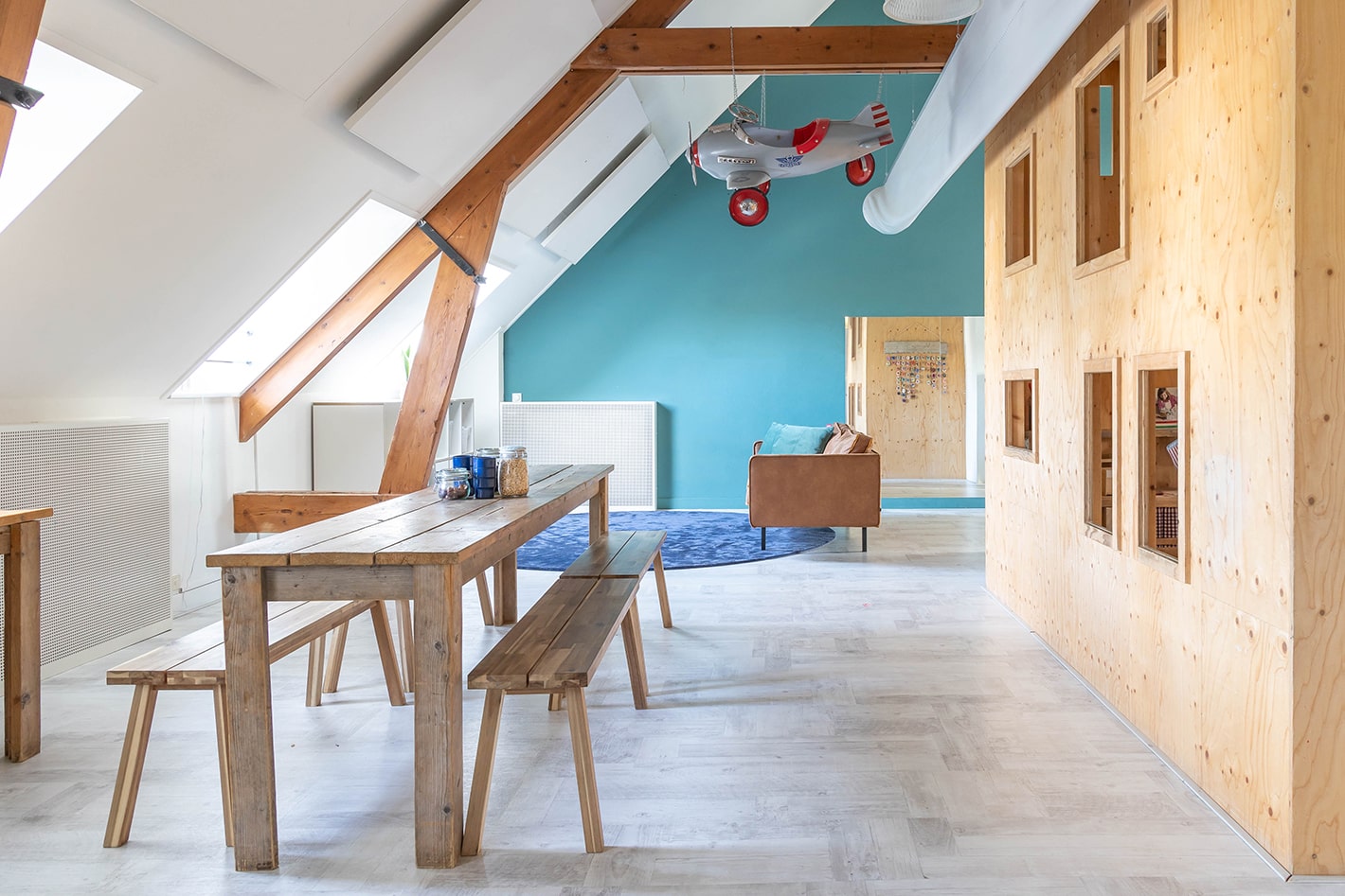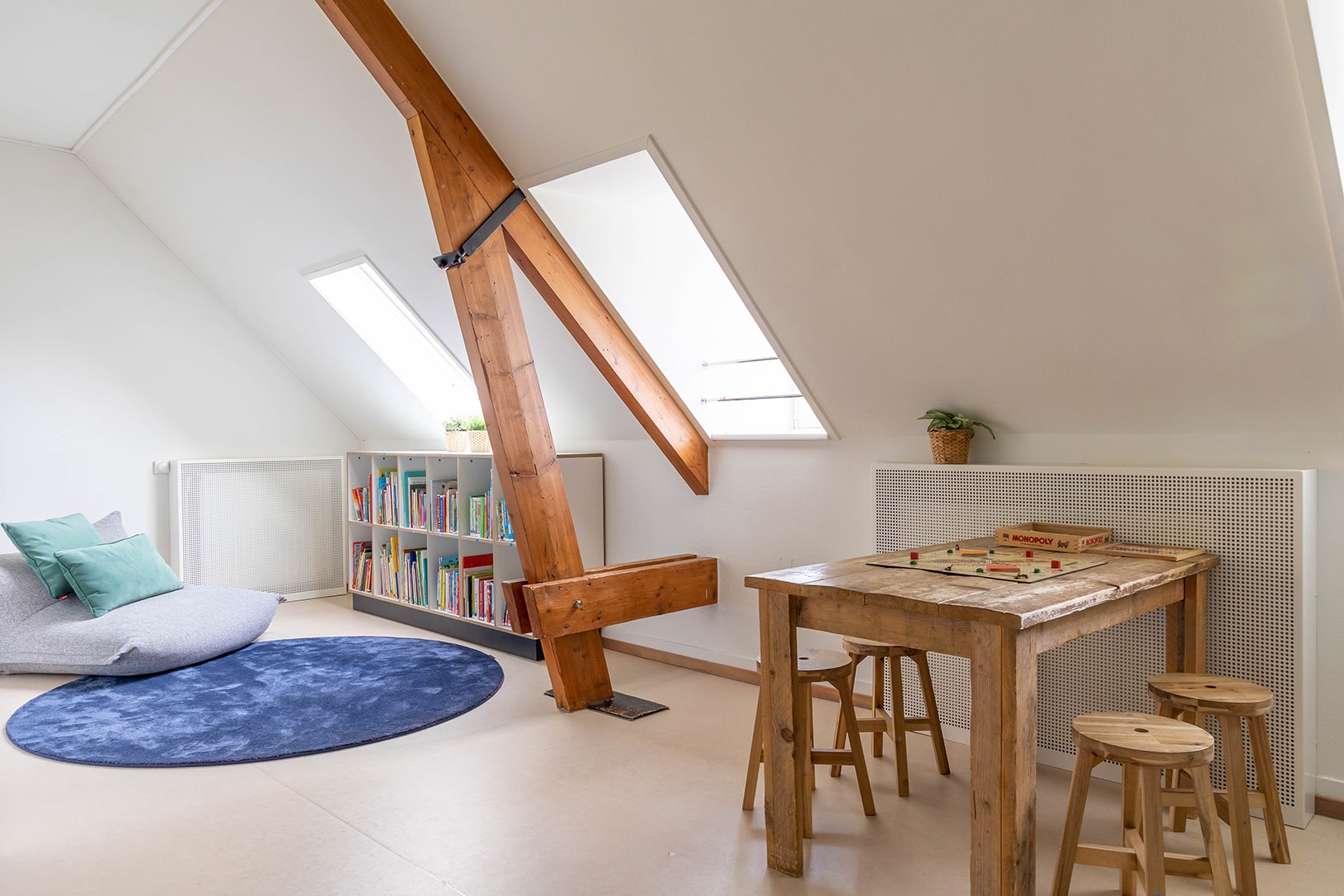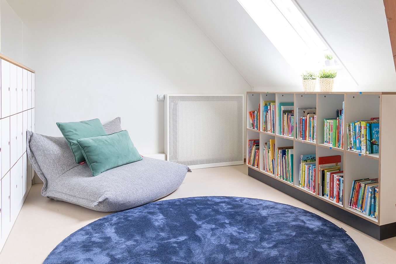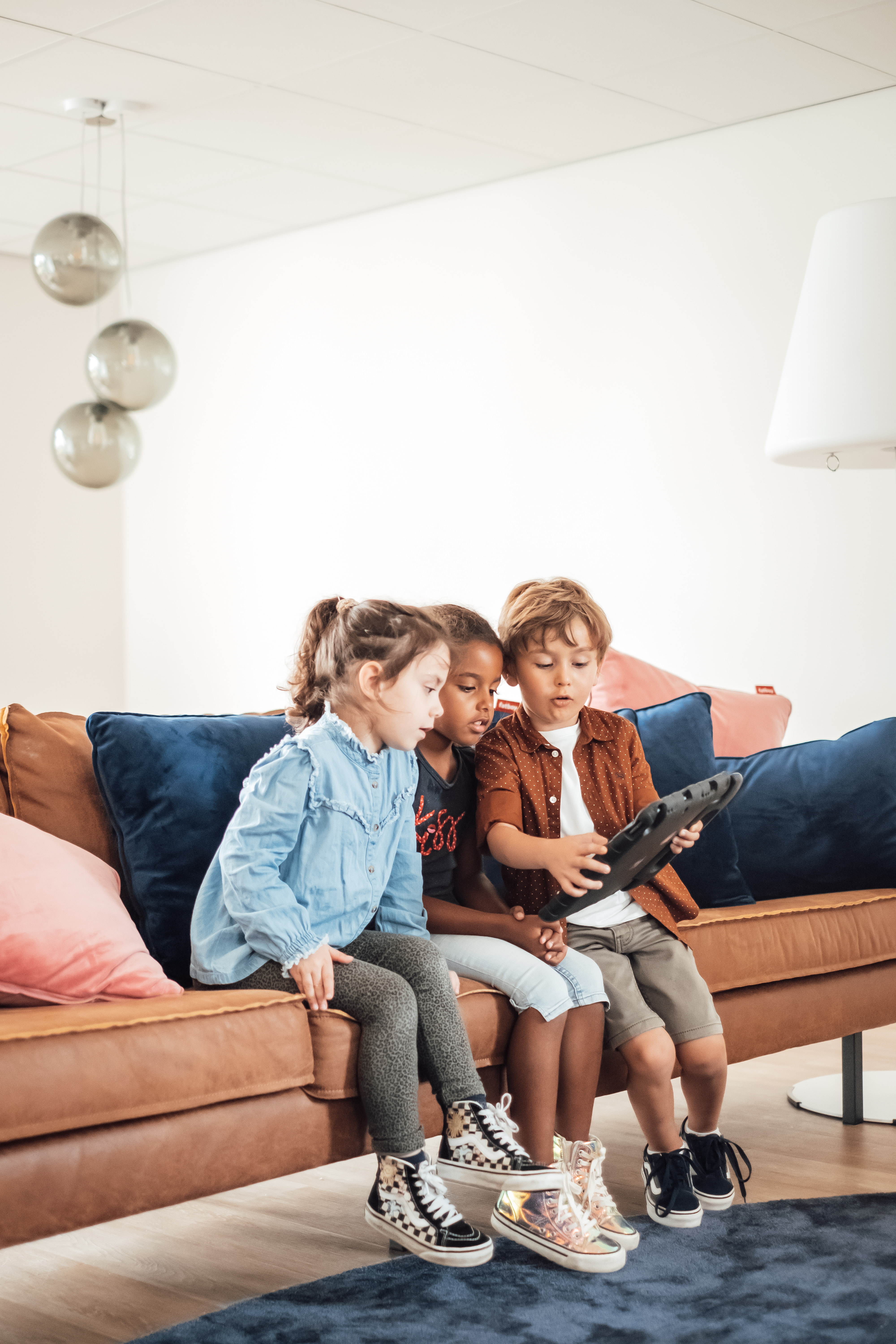 Onze vestiging heeft een warme en huiselijke sfeer. In de woonruimte kunnen kinderen fijn ontspannen na een drukke dag op school. Even heerlijke chillen op de bank of in de zitzakken met een goed leesboek.