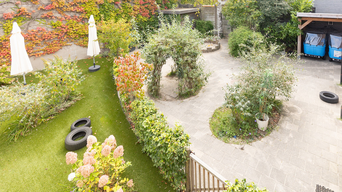 Buiten spelen is gezond, vandaar dat je ons vaak in onze natuurlijk ingerichte tuin vindt. Alle elementen uit de tuin dragen bij aan een andere manier van leren spelen: van bamboebos waar je je goed kan verstoppen tot fietsparcours en klimtoestellen. Ook hebben we een eigen moestuin die we samen onderhouden. Dit is een mooie manier om kinderen te leren over de natuur, maar ook om te zorgen voor de natuur.