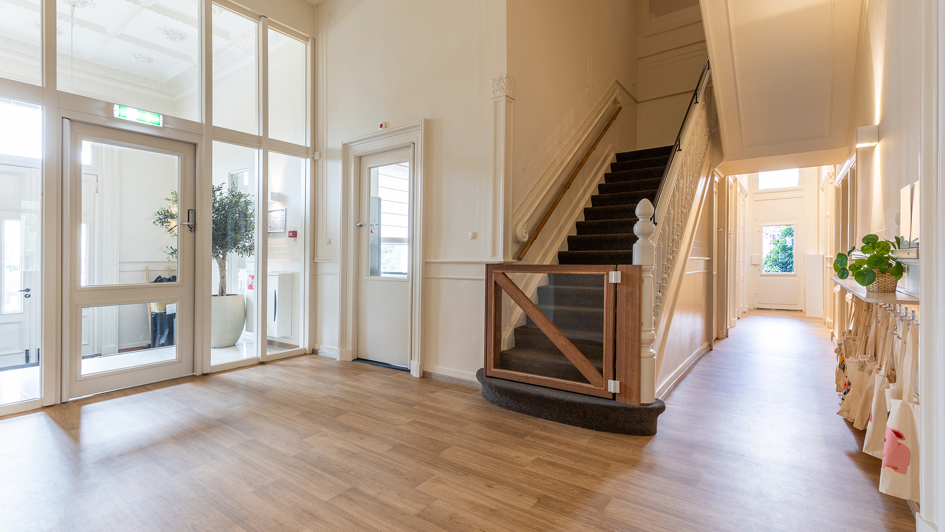 De tuin is een feest. Niet alleen volgens onze ouders... Een fantastische ruimte waar de kinderen op ontdekking kunnen gaan: touw-klimelementen, een ‘tankstation’ voor de fietsjes, een uitdagende helling waar je heerlijk je energie kwijt kunt en een zandbak die gevuld kan worden met water vanuit de grote waterboomstam. De afgeschermde babytuinen kijken uit op de grote tuin. Ze hebben een kleine zandbak en een klimelement om de motorische ontwikkeling te stimuleren.