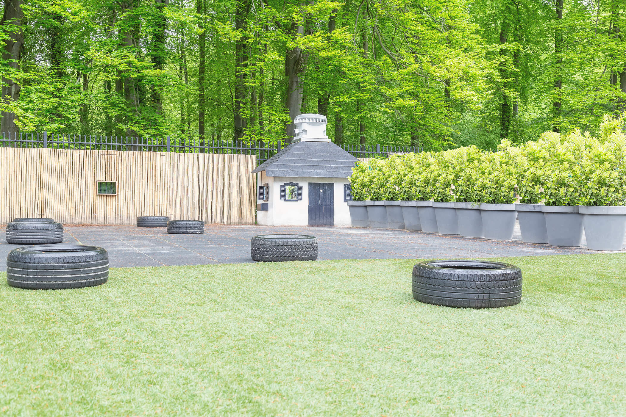 Onze grote, schaduwrijke tuin nodigt echt uit om te gaan ontdekken en spelen. Voor de baby’s is een afgeschermd stuk, waardoor de oudere kinderen zich naar hartenlust kunnen uitleven op het ontdekpad, het fietsparcours en hun evenwicht kunnen oefenen op de halve autobanden.