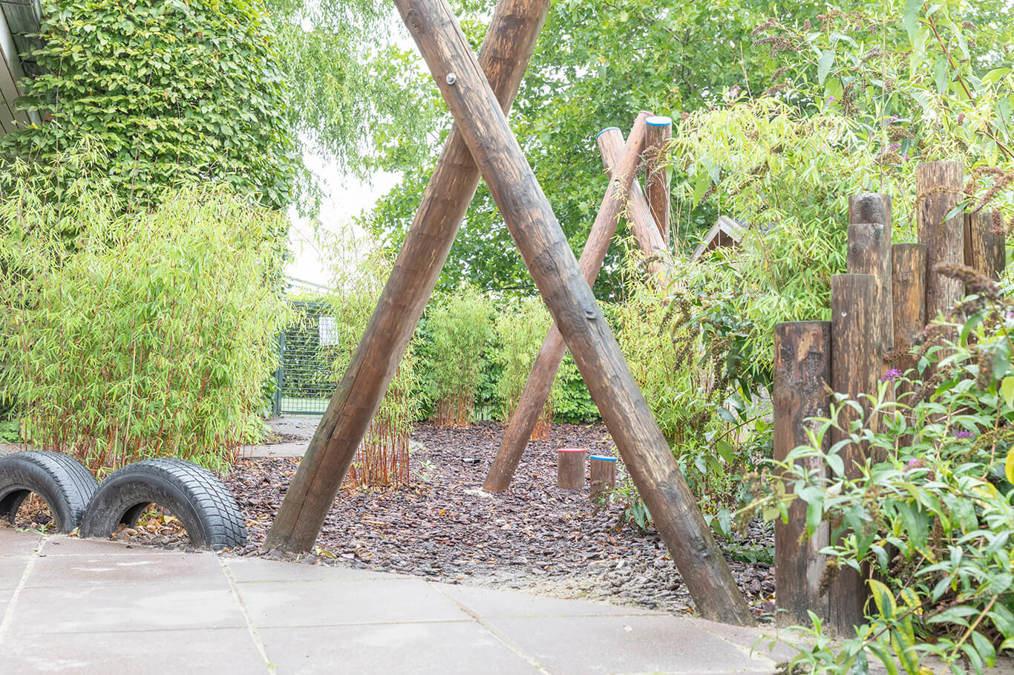 Avontuur in de ontdektuinIedere groep heeft een eigen stukje tuin die echt uitnodigt om te gaan ontdekken en spelen. Baby's spelen veilig in hun eigen afgeschermd gedeelte. De dreumesen en peuters kunnen naar hartenlust spelen met de waterpomp, fietsparcours, het duikelrek en kunnen zich verstoppen in de bamboebosjes.