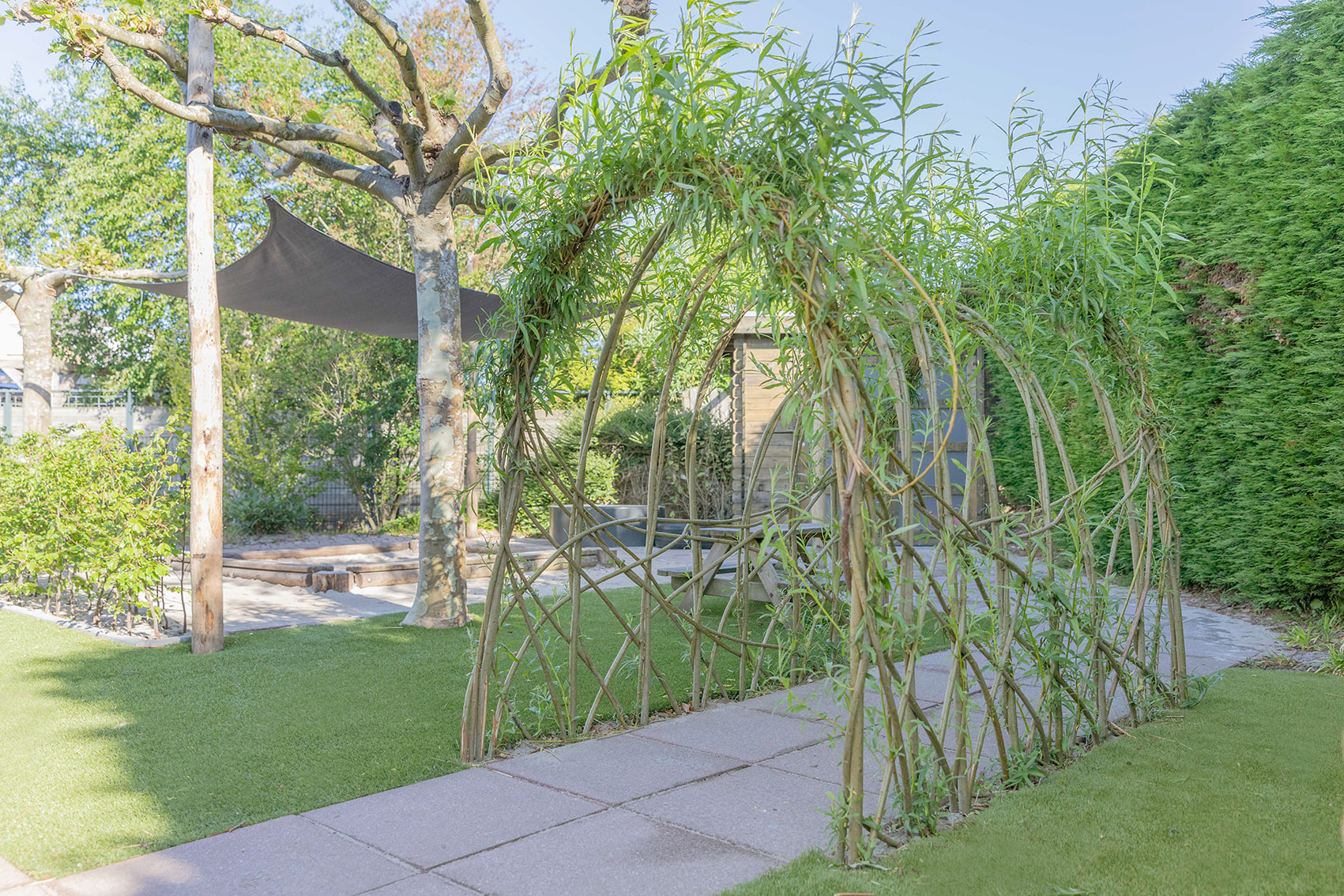 Onze grote groene tuin met schaduwplekken nodigt echt uit om te gaan ontdekken en spelen. Alles zorgt ervoor dat een kind wordt uitgenodigd om te gaan ontdekken in onze avontuurlijke tuin.