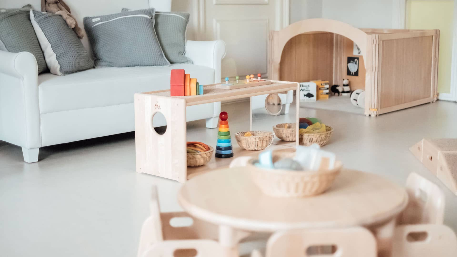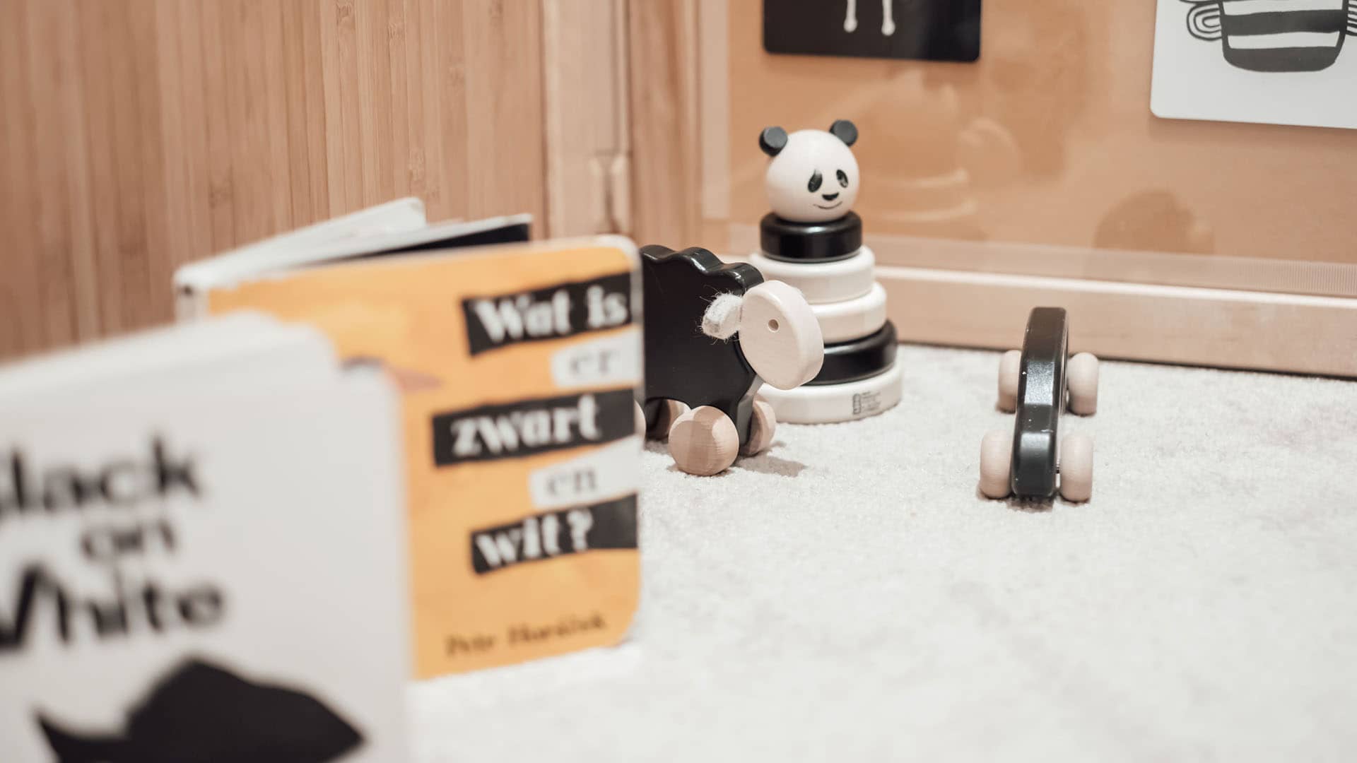 Onze babygroep(en) zijn zo ingericht dat ieder kind in de leeftijd van 0 tot 2 jaar in alle rust kan spelen en ontspannen. Er is keuze uit ons zwart wit hoekje, leeshoekje, het keukenblok, de grote speelmat of onze spiegel met voeltegels.