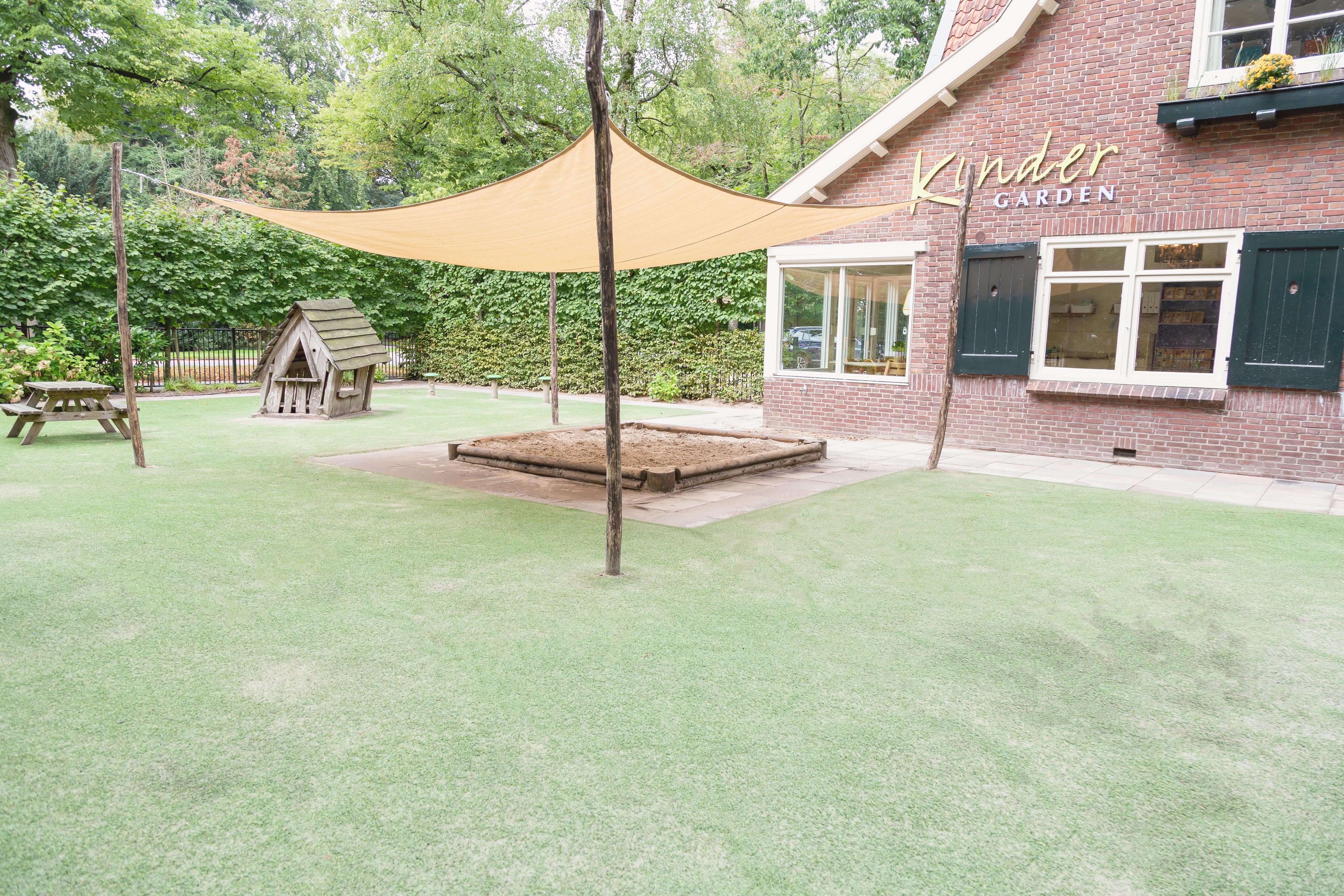 • Peuter speelt in de tuin van Kindergarden kinderopvang